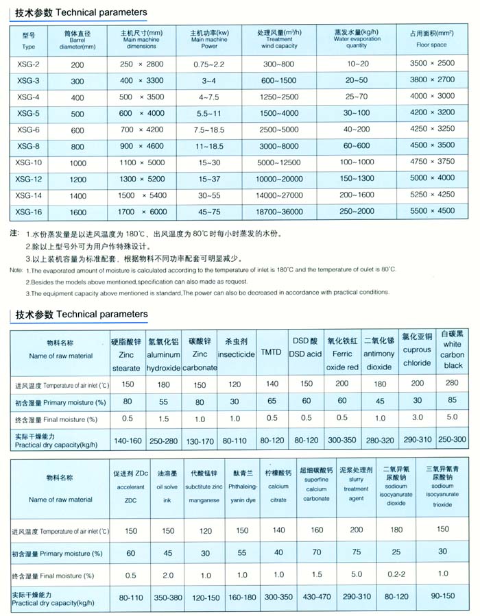 由于物料受到XSG系列旋轉閃蒸干燥機離心、剪切、碰撞、摩擦而被微粒化,呈高度分散狀態(tài)及固氣兩相間的相對速度較大,強化了傳質傳熱,因此XSG系列旋轉閃蒸干燥機生產(chǎn)強度高。