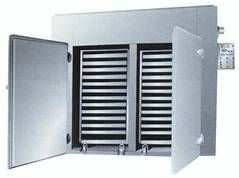 利用強(qiáng)制通風(fēng)作用,箱內(nèi)設(shè)有可調(diào)式分風(fēng)板,物料干燥均勻,熱源可采用蒸汽、熱水、電、遠(yuǎn)紅外,選擇廣泛。